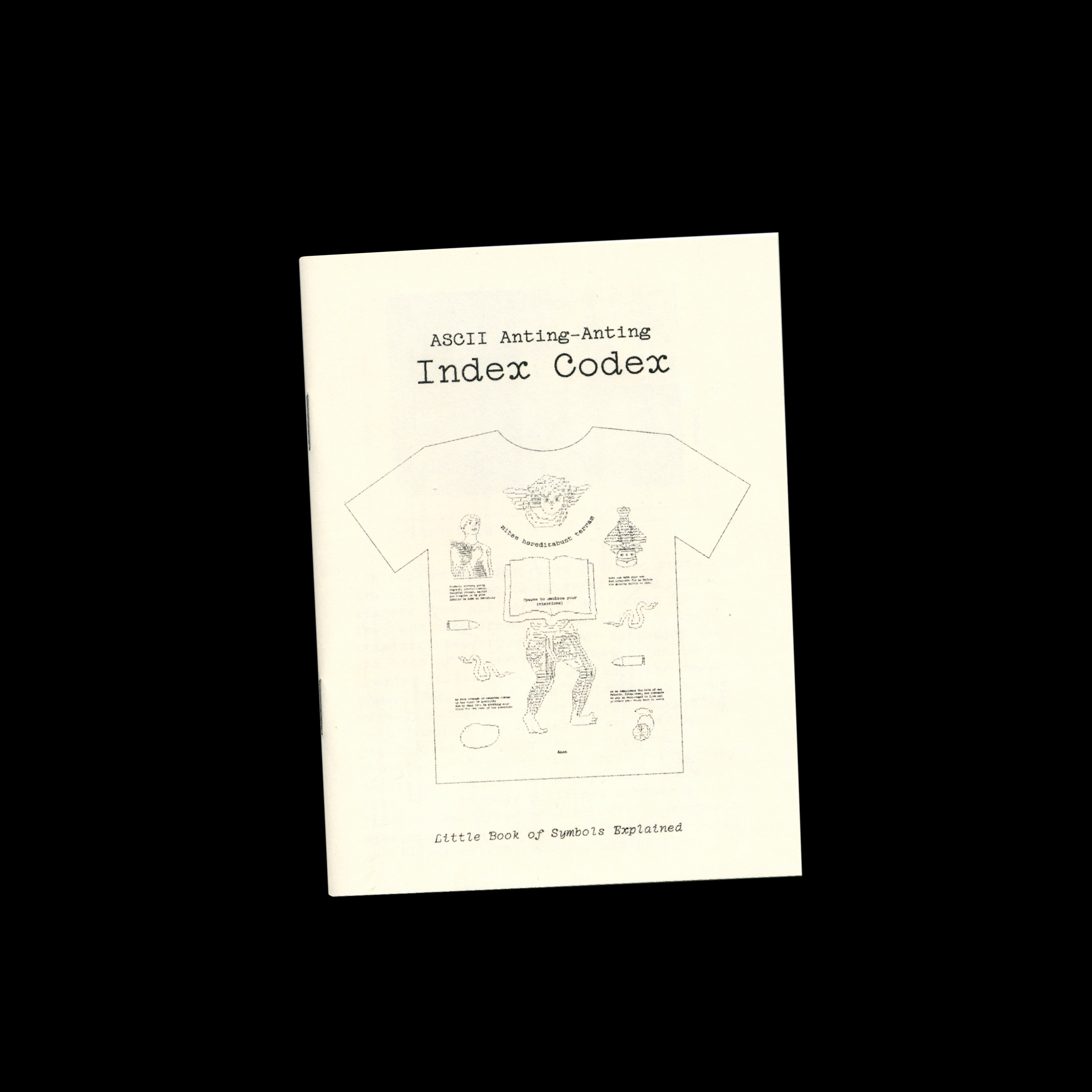 ASCII Anting-Anting is a shirt+zine research project that explores Filipino vernacular spiritual objects, called ‘anting-anting’ or ‘agimat’. With a particular focus on the vests that many working class revolutionaries wore into battle, the motifs wind through Filipino saints, colonization, cultural syncretism, and much more! One thing that’s interesting about these garments is that they combine catholic and animistic imagery with vernacular language and bits of Latin. In many ways the garments themselves are artifacts of cultural and spiritual processes of ‘remix.’ I chose to render them as ascii drawings to evoke a sense of diasporic distance and reference the digital means by which I connect with these stories!