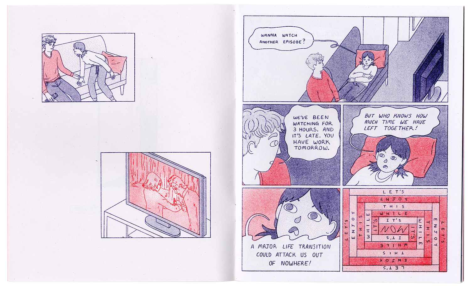 A comic about the things we yearn for. A language student studying abroad in Tokyo follows a couple of english-speaking expatriats to a mysterious film screening.